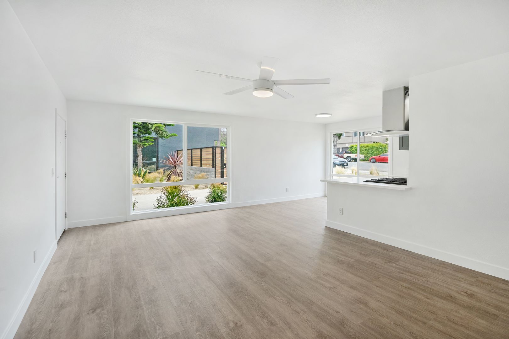 Beautiful, spacious apartment home has been completely remodeled featuring a new designer kitchen with quartz counters and new custom cabinetry, custom tile work, new flooring, ceiling fans and more.